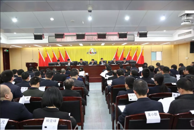1月22日下午,湖南航天召开第二届三次职工代表大会,会议听取了湖南航天党委书记、董事长唐应伟作的《关于职工代表讨论情况及2019年工作会报告修改意见情况的说明》,湖南航天纪委书记韩海彬宣读了《关于湖南航天2019年工作会报告的决议(草案)》,会上,与会职工代表以举手表决的方式一致审议通过。湖南航天领导班子、职工代表、列席代表近100余人参加会议。大会由湖南航天党委副书记、总经理焦继革主持。
