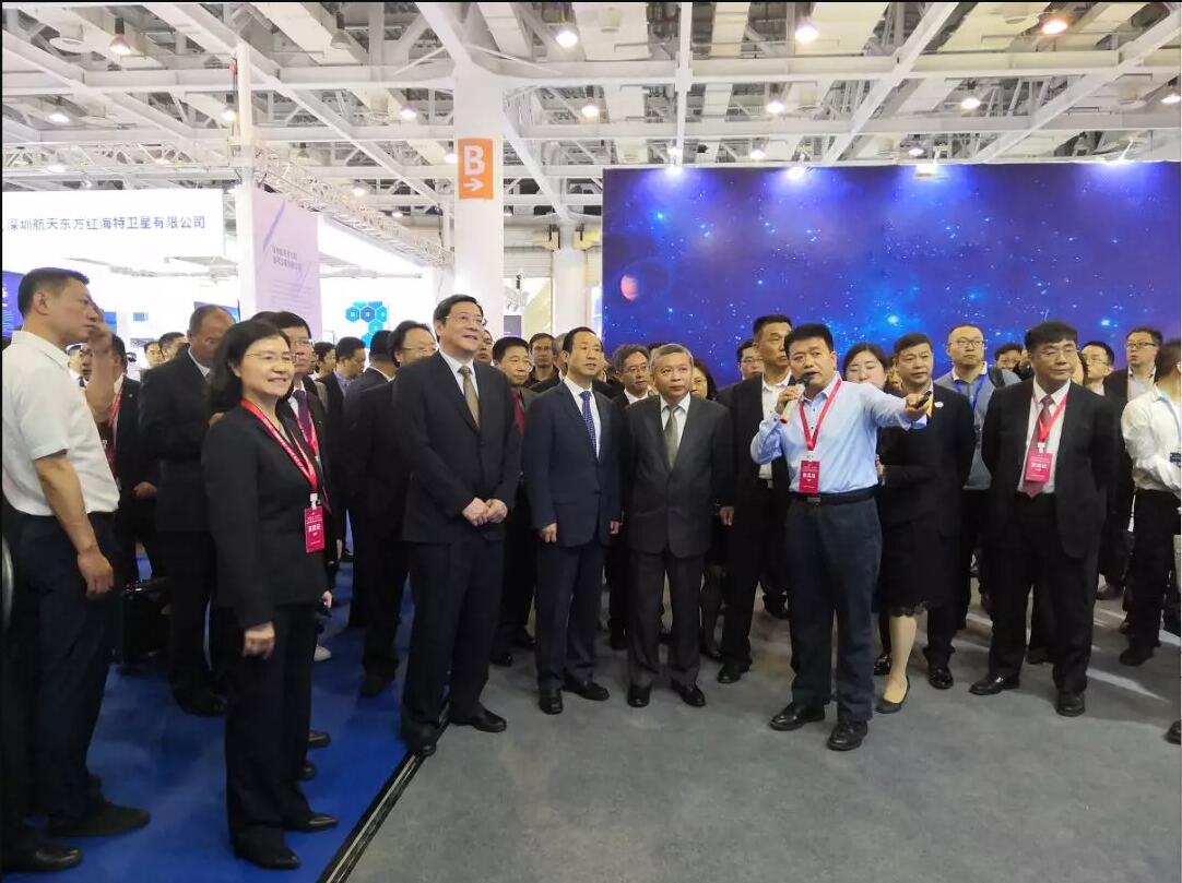 随后,中国航天科工集团有限公司董事、总经理、党组副书记刘石泉来到湖南航天展厅,参观了航天装备、新材料和环保系统工程展台,对湖南航天展出的5G材料、电磁修复材料、园区第三方综合治理等产品给予了高度的评价。