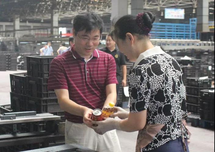 在温度高达近40℃的铁氧体原材料车间里,田良玉亲手将一件件凉茶等防暑降温用品送到职工手中,向大家表示亲切慰问,并叮嘱大家在坚守岗位的同时注意安全生产,做好防暑降温工作。