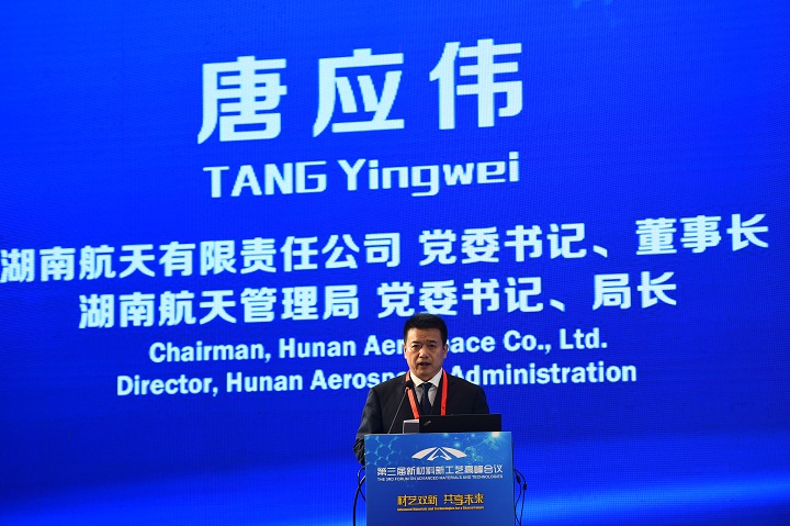 在主论坛报告环节,湖南航天科技委主任、总工艺师段东北围绕“协同发展打造新材料产业集群”主题作了主旨报告。