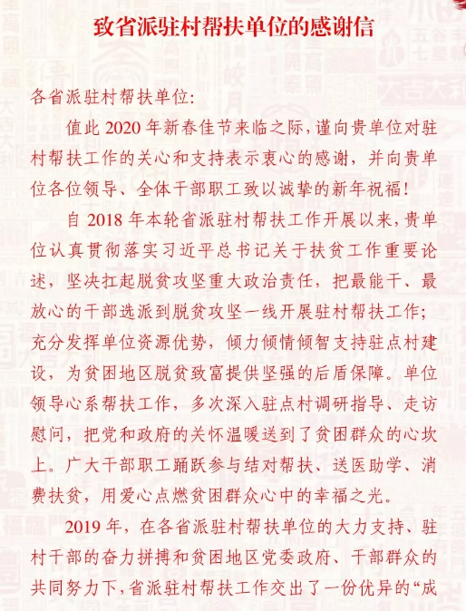 为感谢湖南航天一直以来对扶贫工作做出的积极努力。湖南省派驻村帮扶工作队管理办公室近日特意发来了《致省派驻村帮扶单位的感谢信》。