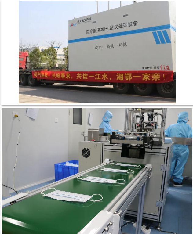 湖南航天在疫情期间,创新应变 、危中寻“机”、 开发新产品 、大力拓展外部市场。天麓公司开发云上检测服务精品市场——严选商城、结合移动检测车开发出了移动应急监测方案、建立集团公司首条医用口罩生产线并投入生产。湖南航天凯天环保自主研发的小型医疗废弃物一站式处理设备发往武汉调试并准备投入使用。