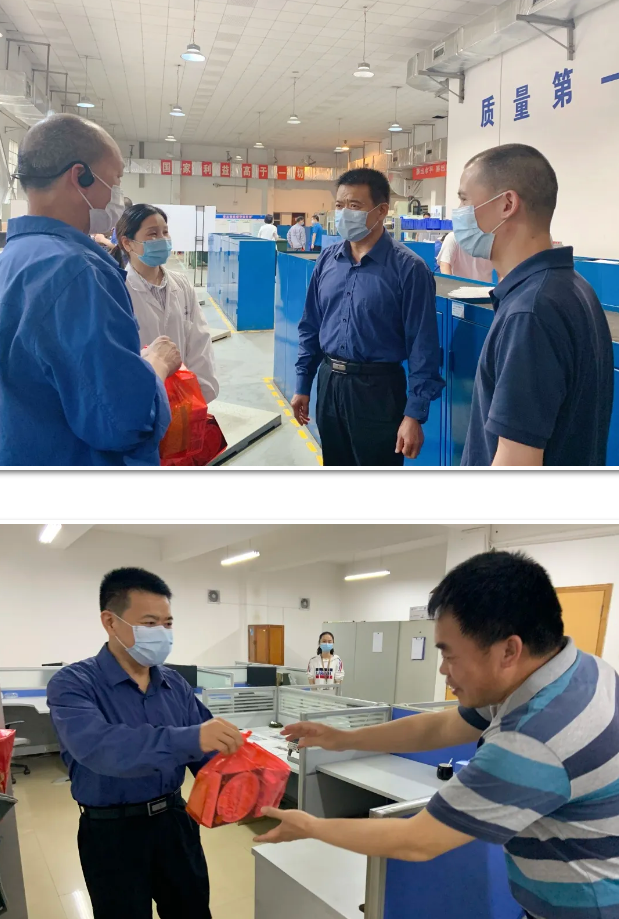 唐应伟每到一处都认真查看生产线运转情况,亲切地与员工交谈,向不分昼夜,加班夺损失、全力赶序时的科研生产一线干部职工致以节日的问候并送上慰问物资。他希望员工们在繁忙的工作之余,注意劳逸结合、确保安全、再接再厉,把工作干得更好。
