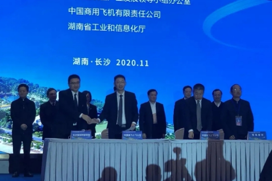在湖南省委副书记、省政府党组书记毛伟明和中国商用飞机有限公司党委书记、董事长贺东风等领导的共同见证下,湖南航天新材料产业研究院有限公司(以下简称新材料院)与上海飞机制造有限公司(以下简称上飞公司)签订了合作协议。