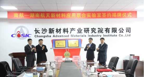 仪式上,湖南航天党委与南航材料科学与技术学院(以下简称材料学院)党委还签署了“南航材料学院—湖南航天党建共建协议”,开启“党建引领,业务同行,资源共享,推进校企深度融合”新篇章。签约后,湖南航天领导和南航材料学院领导共同为联合实验室揭牌。