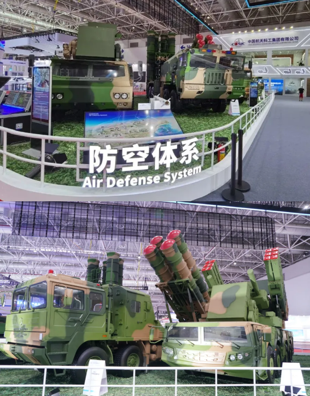 HQ-17AE是国际先进的近程防空武器系统,导弹战车高度集成,具备行进间目标搜索、跟踪和导弹发射的独立作战能力,可同时制导4发导弹拦截4个目标。FL-3000N是先进的舰艇自卫防御导弹武器系统,适装各种水面舰艇,主要用于拦截低空、超低空来袭的各种体制反舰导弹,兼顾拦截固定翼飞机、武装直升机,具有发射后不管、多目标拦截能力强、配置简单灵活、使用维护简便等特点。FK-3全天候中远程地空导弹武器系统,具备联网作战能力,具有较强的抗干扰能力和综合作战效能。