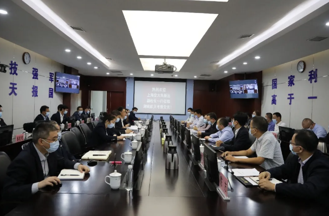 10月13日,为深入落实集团公司与上海交通大学(以下简称“上海交大”)全面战略合作协议有关部署,加强产学研用协同创新,上海交大朱新远副校长一行受邀赴湖南航天考察交流。湖南航天党委书记、董事长焦继革,副总经理黄锡成出席活动。上海交大相关学院领导、教授及湖南航天本部相关部门负责人、所属单位领导参与活动。
