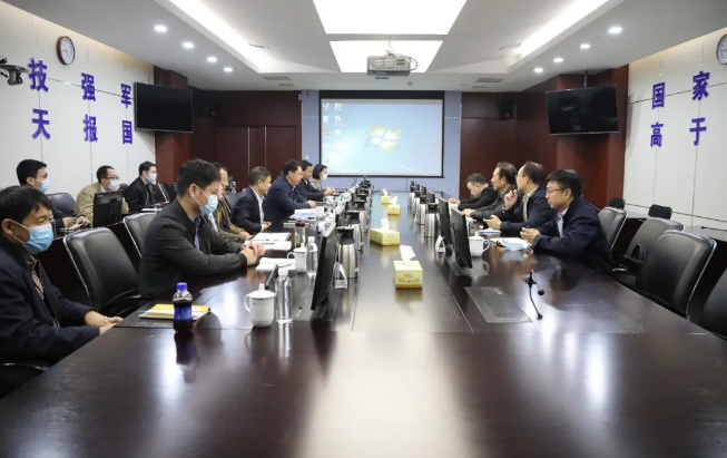近日,国防科技大学王振国院士一行到湖南航天调研。湖南航天党委书记、董事长焦继革,副总经理黄锡成、陈波陪同。
