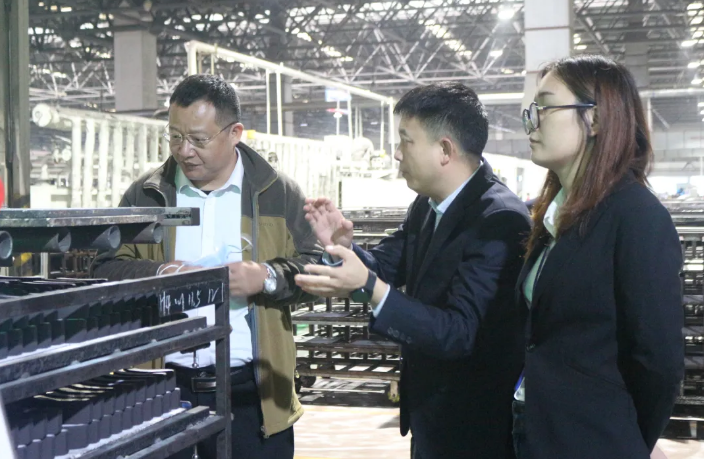 陈波一行调研了瓦磁示范线,详细了解了铁氧体瓦磁的生产工序和生产自动化、数字化改造情况,并针对相关工作与湖南磁电班子成员和项目团队负责人进行了深入交流。