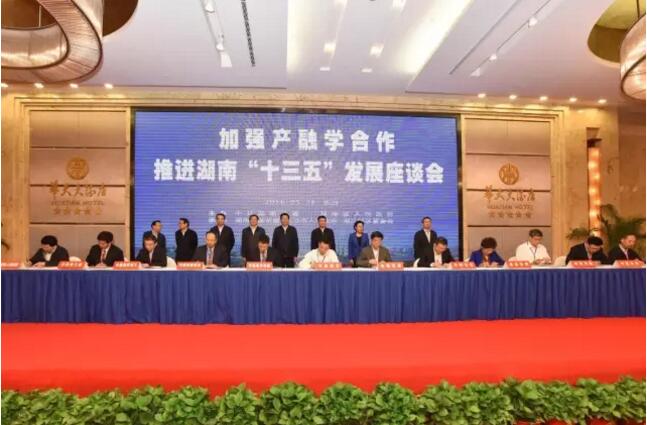 5月28日下午,湖南省委书记、省人大常委会主任徐守盛,省委副书记、省长杜家毫在长沙会见了来湘出席“加强产融学合作,推进湖南‘十三五’发展座谈会”的国务院国资委主任肖亚庆及多家央企主要负责人,李跃代表集团公司参加了该次会议并签定了中国航天科工集团与湖南省政府战略合作框架协议。(文/相恒继) |