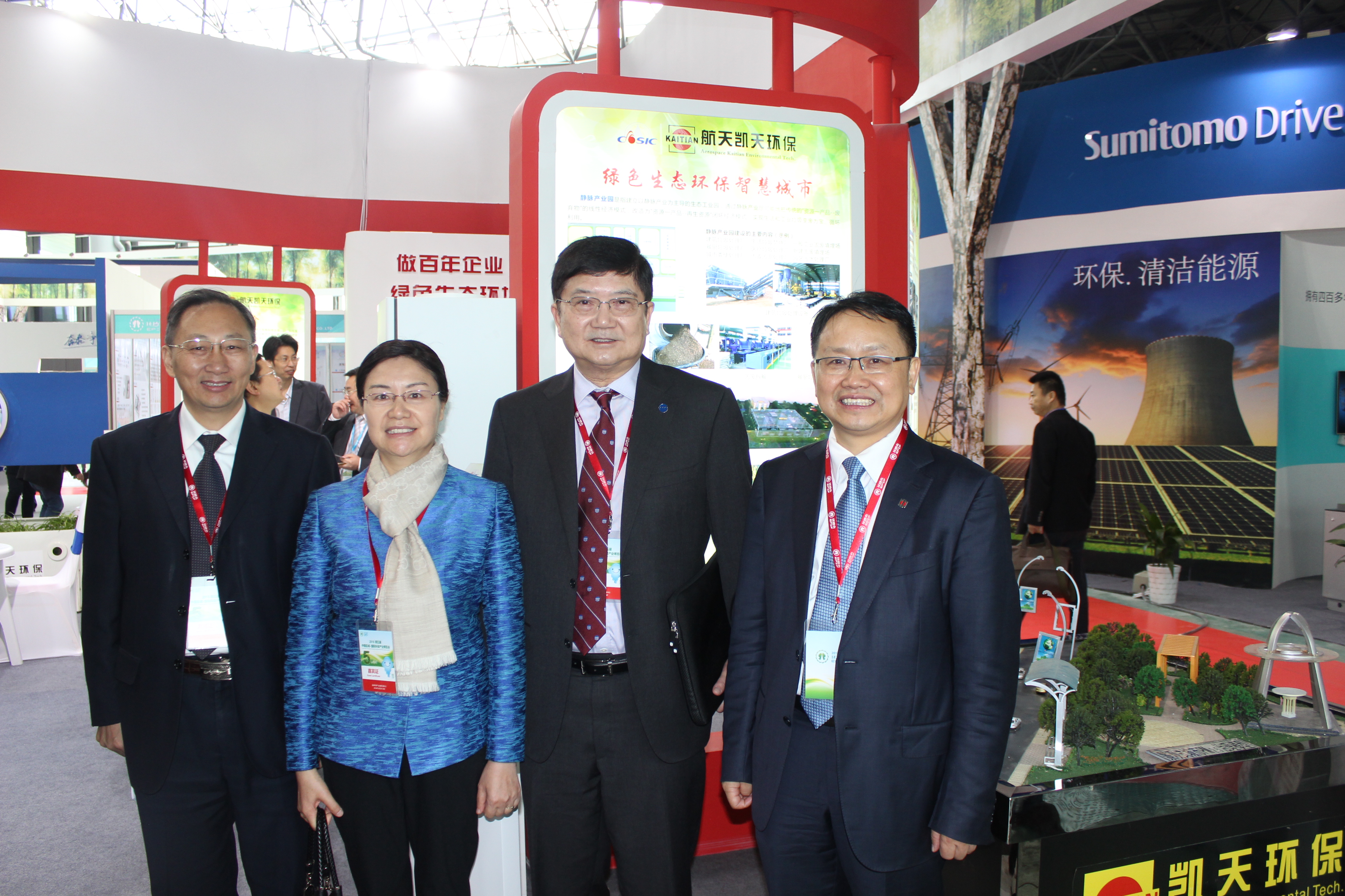 展会由湖南航天有限责任公司董事长胡雪梅、航天凯天环保叶明强先生带队,公司首次以四大业务板块的形式布展,结合国家打造智慧城市、生态工业园区和美丽乡村及智慧家庭的战略方针,公司从自身特点出发,针对市场迅速推出了符合市场需求的产品,如农村垃圾低成本无害化处理系统、适合乡镇、农村甚至单户的农村污水治理设备,此外还有新风机、雾霾治理设备等一系列高技术产品。产品得到了政府、合作伙伴和参观群众的肯定和欢迎,展位上参观的人络绎不绝,更有许多意向合作对象纷纷表示希望加入航天凯天大家庭。