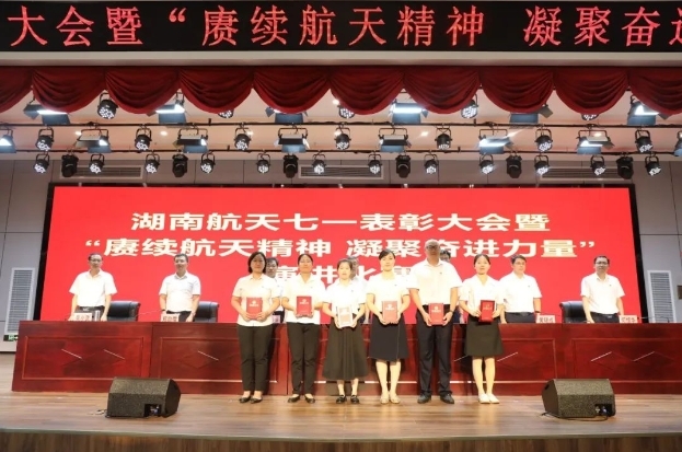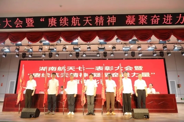 会议在庄严雄壮的国歌声中拉开帷幕。随后,湖南航天党委书记、董事长焦继革带领新党员代表宣誓、老党员重温入党誓词。这既是牢记初心使命的再宣示,更是矢志接续奋斗的再出发。与会领导为受表彰的先进集体和个人代表颁奖。获奖代表进行了交流发言。