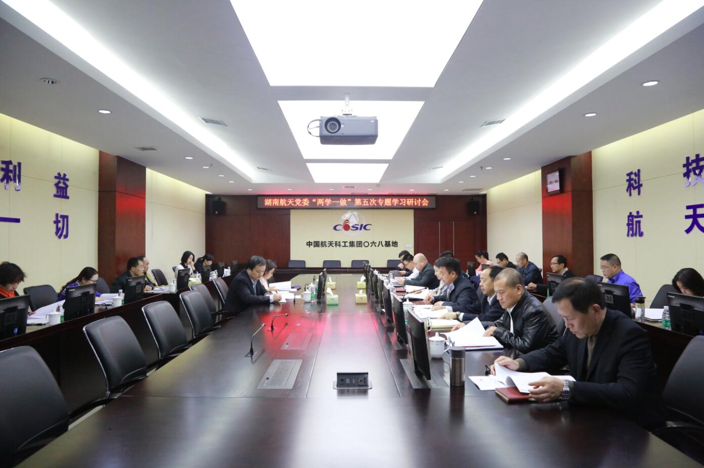 11月7日,湖南航天有限责任公司党委召开“两学一做”学习教育第五次专题学习讨论会,主题为:深入学习习近平总书记系列重要讲话和高董事长讲话,严格要求自己,履行好领导干部从严治党责任,结合湖南航天当前科研生产形势,围绕带头遵规守纪、带头奋发有为、带头开拓进取、带头加班加点、带头追求实绩,做合格共产党员,确保完成全年科研生产目标。集团公司第三督导组成员卢超、范玉到会指导,董事长胡雪梅、党委书记唐应伟等湖南航天党委委员、领导班子成员、科技委主任、总经理助理、本部部门负责人及督导组组长参加了专题研讨。唐应伟主持会议。