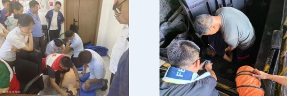 湖南磁电石门园区邀请石门县红十字会医院应急救护师资团队,采取“理论+实操+考核”的模式开展心肺复苏、中暑急救、溺水救援等急救培训。