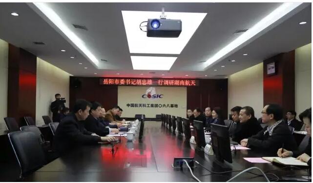 3月17日,岳阳市委书记胡忠雄率岳阳市领导班子一行6人调研湖南航天。湖南航天董事长、总经理胡雪梅,党委书记唐应伟、副总经理罗传勇、副总经理杨运斌、资深专务鲍定超,局长助理孙鸿、王永森等陪同调研。