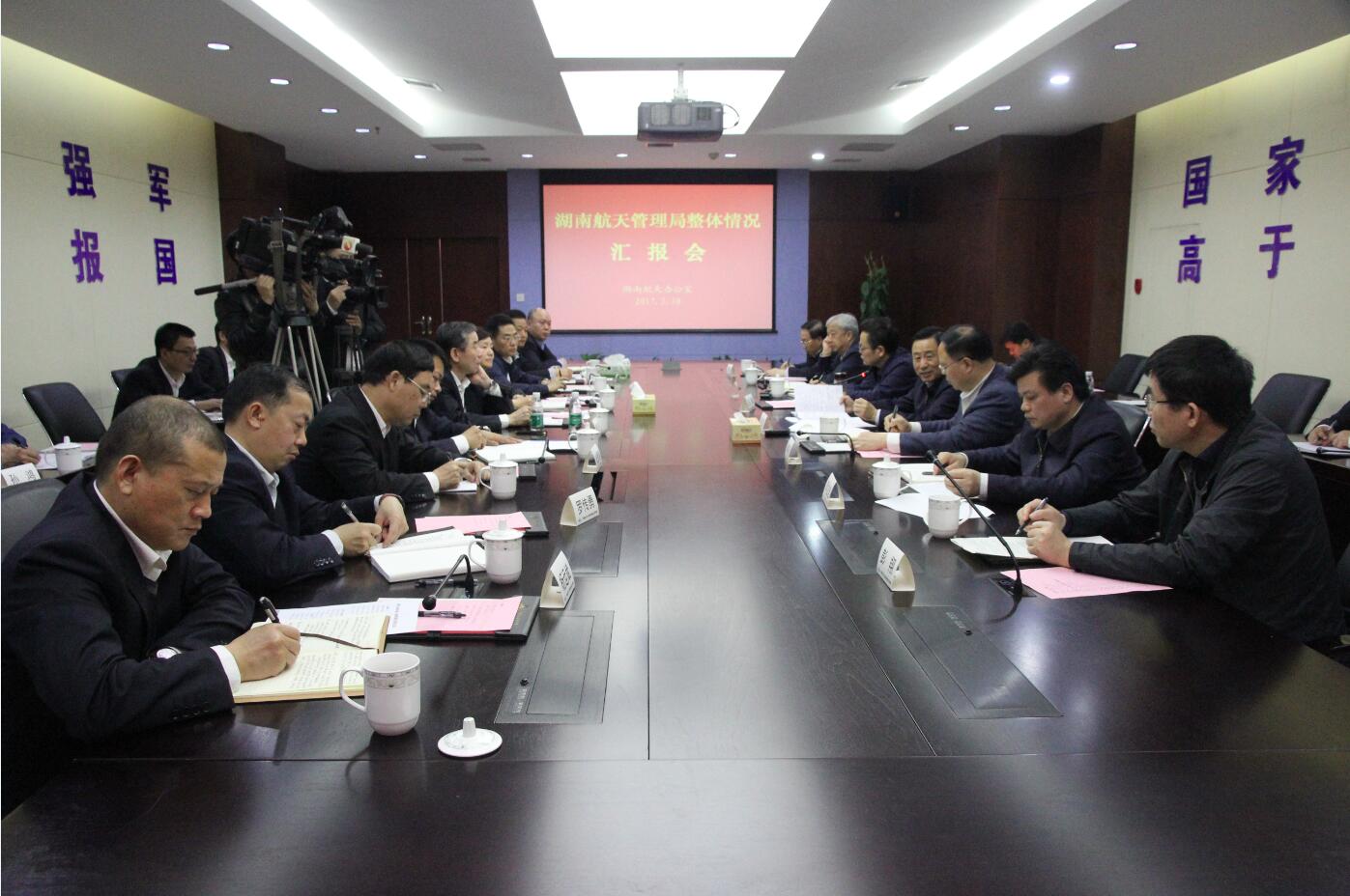 “我在航天系统工作了30多年,对航天事业有着深厚感情,今天来到这里让我倍感亲切。”在座谈中,许达哲充分肯定湖南航天近几年的发展,他认为湖南航天克服各种困难,应对各种挑战,改革发展取得了长足的进步,产业板块清晰,转型升级成效显著,为国家航天事业和湖南经济发展作出了积极贡献。他说,湖南航天在产业、平台、技术、人才等方面独具优势,在湖南实施创新引领、开放崛起战略,打好转型升级、环境治理战役,建设“五个强省”中大有可为。希望湖南航天在为国家作贡献的同时,积极融入湖南经济改革发展,抢抓军民融合上升为国家战略的大好机遇,长株潭中国制造2025试点示范城市群创建等重大机遇,让军民融合成为推动企业发展的重要抓手。
