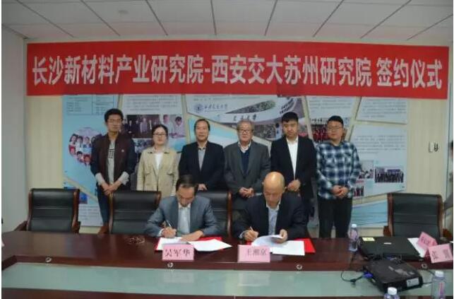 4月7日,长沙新材料产业研究院与西安交通大学苏州研究院联合共建的“新材料技术联合实验室”签约仪式在西安交通大学苏州研究院顺利举行。新材院党委书记、副院长王湘京,西交大苏研院院长吴军华代表签订了协议。