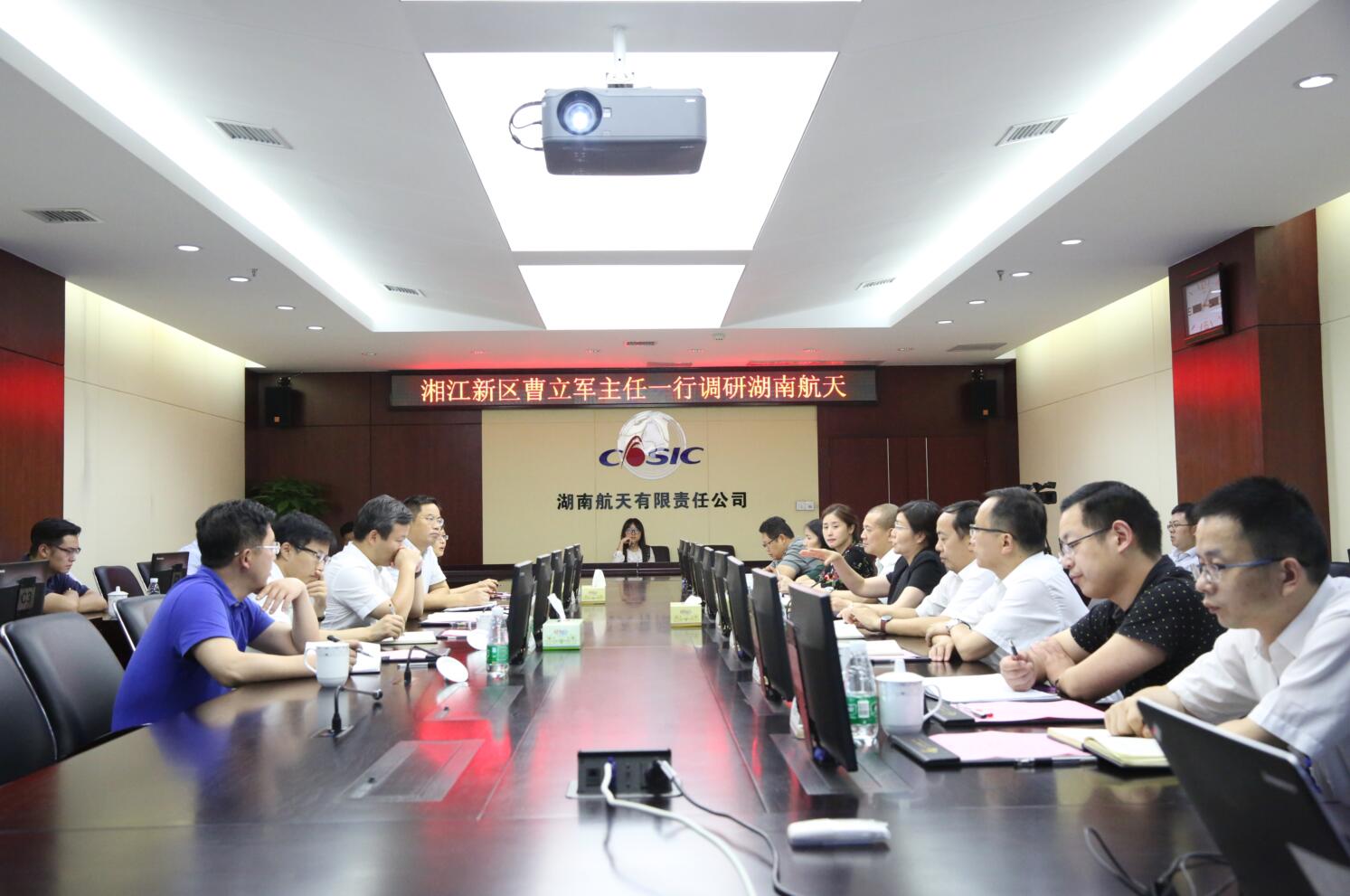 曹立军对湖南航天的发展给予了充分的肯定,指出湖南航天为湖南和长沙的经济发展做出了巨大的贡献,当前要抓住机遇,高度重视军民融合产业发展,把湖南湘江新区的军民融合产业推上一个新高度。他表示,湘江新区将全力支持湖南航天的发展,把更多好的项目、技术、产品引进来,做大做强湖南航天。