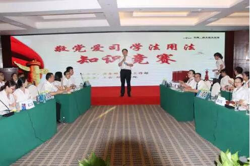 此次知识竞赛以“敬党爱司,学法用法”为主题,旨在鼓励和引导公司党员、干部、员工积极参与两学一做、依法治企与学法用法活动,营造浓厚学习氛围,打造航天凯天企业文化品牌,提升党员干部和员工思想政治素质、业务素质、法律素质。航天凯天环保总裁叶明强、副总裁刘华、廖丰湘、曾毅夫、胡坤山、石景,航天凯天党总支副书记刘素琴、大气环境治理事业部董事长刘泽利等在家领导出席活动,湖南航天有限责任公司副总法律顾问艾如道先生、湖南弘一律师事务所主任陈宏义先生、株洲凯天环保科技有限公司董事长李惠平先生受邀担任本次竞赛嘉宾评委。活动中,航天凯天总裁叶明强先生作了赛前讲话,主管法务的副总经理廖丰湘先生致开场词,副总裁刘华先生作总结讲话。