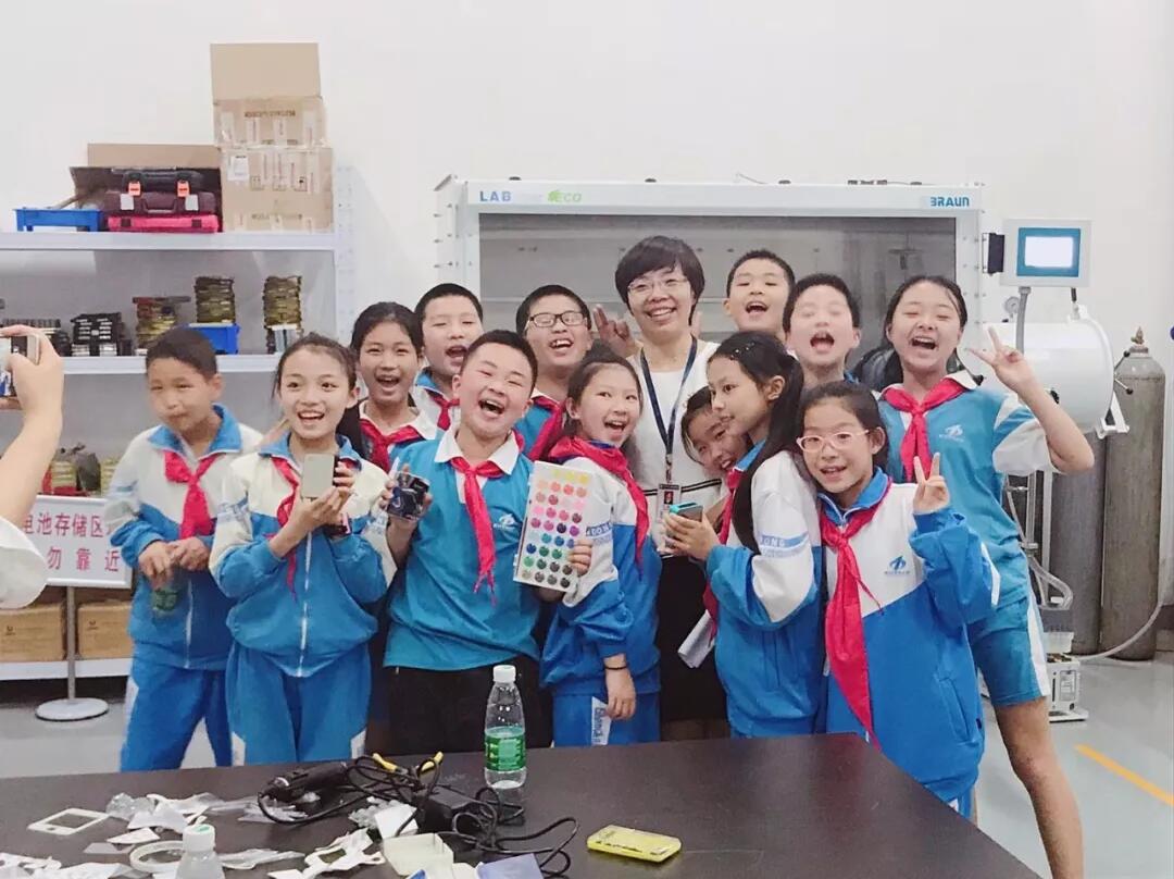 在新材院,博士们用通俗易懂的语言和实验为孩子们讲解了院里开展研究的先进材料的特性与其在航天的应用,小学生代表在指导下用可回收的动力电池制作了属于自己的航天充电宝。