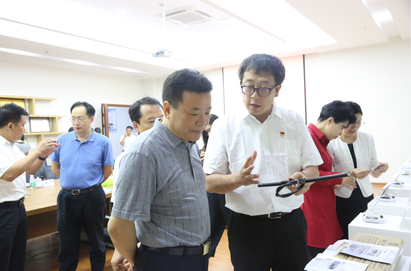 陈飞副省长一行首先走进了新材料院展厅进行视察,并听取了胡雪梅关于湖南航天发展历程、战略布局、产品优势等方面的汇报。在新材料展示区,陈飞副省长停下脚步,拿起展品仔细询问起来,当了解到新材料院在高分子材料、金属粉末、镁合金、金刚石等新材料领域科技创新成果及产业化进程所取得的成绩时,陈飞副省长给予了高度肯定并指出湖南航天在产业、平台、技术、人才等方面独具优势,产业板块清晰,为国家航天事业和湖南经济发展作出了积极贡献。