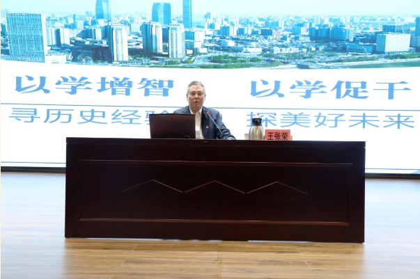 王张荣以《以学增智 以学促干 寻历史经验 探美好未来》为主题,从改革开放的历史进程、现阶段建设发展的新目标、具体工作建议三个方面展开,以上海浦东新区为例,以亲历者身份,用理论+实例方式,具体讲述了上海浦东新区开发开放历史进程中聚焦思想解放、人才聚集、环境打造、生活便利、文化塑造、国际化精神的做法经验,聚焦“三高四新”,从“不做无源之水,从党的科学理论中悟求真理;不做漂浮之萍,在工作具体实践中学以致用;不做井底之蛙,在拓展眼界思路中创新借鉴;不做刻舟之人,在保持终身学习中与时俱进”四个角度提出了具体建议,生动形象地阐释了“以学增智、以学促干”的深刻内涵。