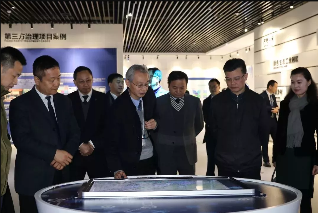 邓立佳一行参观了航天凯天环保运营展示中心,该中心为公司按照高规格、高标准建成的互动体验式公司文化和实物展厅,它采用视频、图片、沙盘、VR互动体验等多种手段,全方位展示公司在建设绿色生态智慧城市、绿色生态美丽乡村、绿色生态工业园区以及绿色生态健康家庭方面的成就。