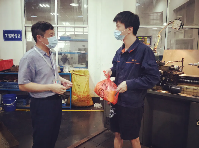 为给加班加点的干部职工送去关爱,5月5日上午,湖南航天党委副书记、总经理焦继革一行四人赴诚远公司慰问一线加班员工。