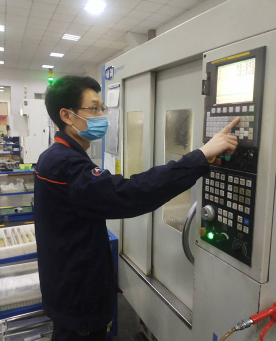 周颂---精密制造事业部加工中心组长,他有着严谨的工作态度,在平时的工作中大家都称呼他为“颂哥”。他总是带头冲锋,“攻城掠地”的完成一次次难题。公司首次承担加工某本体任务时,面对零件形状复杂,材料特殊的项目任务,他与工艺员一起提前预见生产风险,提出工艺合理化建议,在加工过程中,通过刀具、切削参数选择和程序优化等,圆满的完成生产任务,得到客户的认可。在“五一”假期期间,他正加班加点编制某重点产品任务的程序。