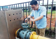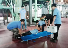 紧急抢险组将鼓风机管道引至消防水泵房,用氧气检测仪检测到水泵房内氧气含量合格后,系好安全带进入。救出模拟窒息员工后,救护组发现其出现呼吸停止等情况,立即对其实施心肺复苏抢救。