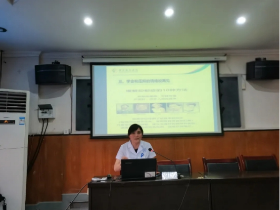 此次培训从身体健康、心理健康两个方面进行,健康培训从预防“三高”、未病先防,既病防变等方面进行健康理念和知识讲解。心理培训围绕向压抑情况说再见,从压抑情况的表现方式、压抑情况时身体反应、压抑情绪后抑郁表现、学会和压抑的情绪说再见四个方面进行。 彭昱分享了学会和压抑的情绪说再见的十种方法:
