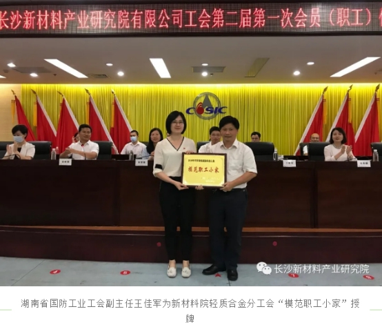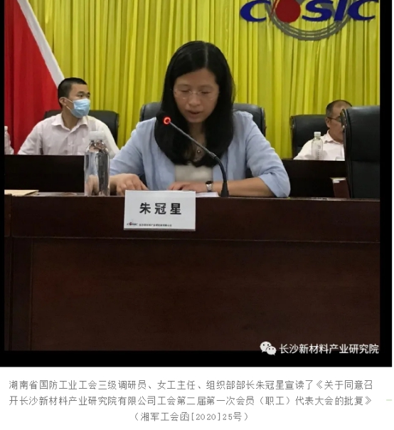 8月11日下午,新材料院召开工会第二届第一次会员(职工)代表大会,湖南省国防工业工会副主任王佳军、湖南省国防工业工会三级调研员、女工主任、组织部部长朱冠星、湖南航天科技委主任、总质量师、总工艺师、长沙新材料产业研究院有限公司党总支书记、董事长段东北、湖南航天党群工作部副部长、工会副主任陈晨倩以及新材料院40名会员(职工)代表,参加了此次会议。