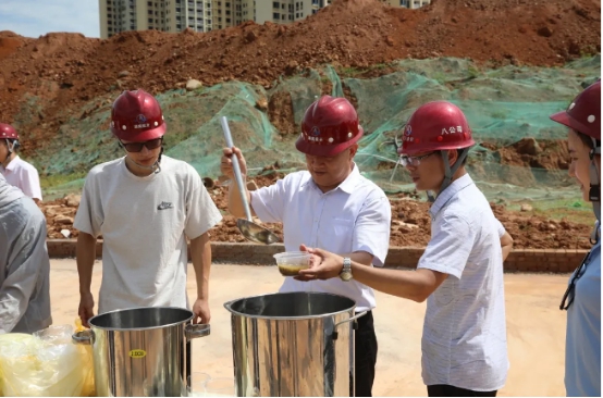 慰问结束后,杨运斌与湖南航天驻现场管理人员进行了亲切的交流,对麓谷项目后续工作提出了三点要求:一是“身体是革命的本钱”,请大家一定做好防暑降温工作;二是全力以赴推进项目建设,保证年前主体结构封顶;三是持续做好“思想防护”工作,杜绝廉洁问题的发生。