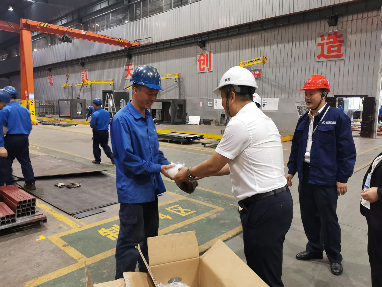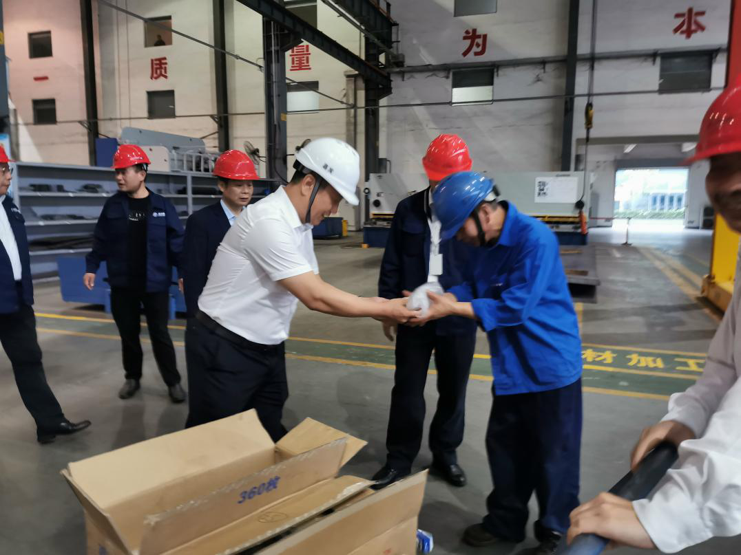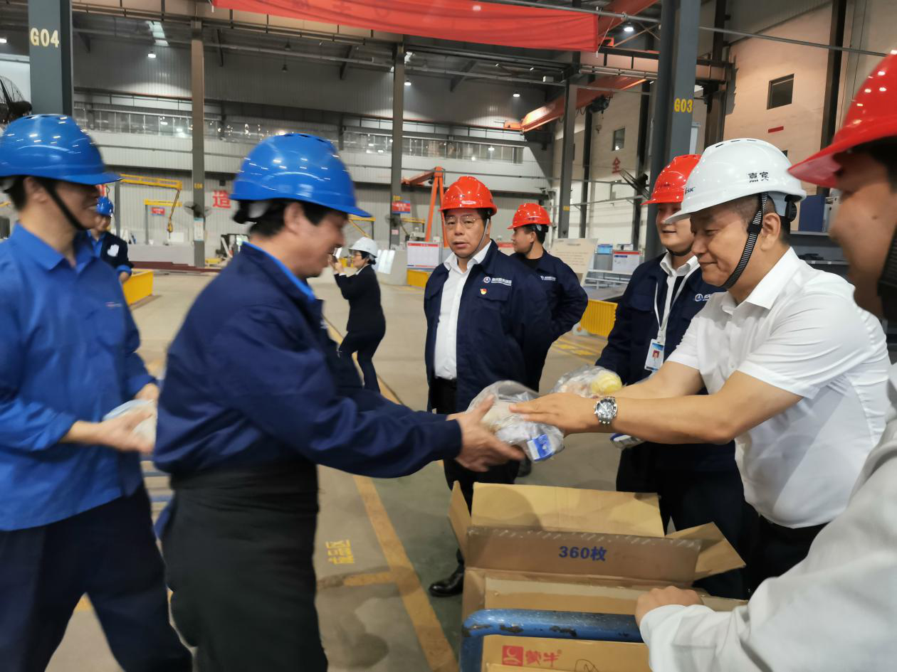 宋卫武代表湖南航天党委、航天凯天经营班子,勉励大家说,“在炎热的酷暑中,大家加班加点完成任务订单,赶超序时进度,大家辛苦了,谢谢你们为公司经营任务完成付出的辛勤劳动。国庆与中秋双节即将来临,今天到年底正好还有100天,我们离经营目标和序时进度还有较大的差距,公司已经吹响了“冲刺一百天 打赢攻坚战”的号角,还需要大家继续加班加点赶超任务,特代表公司党总支、经营班子向大家致以节日的问候。希望大家越是生产繁忙,越要注意安全质量,注意身体健康,做到两不误两促进”。慰问中,宋卫武还向高级副总裁王宏详细询问了目前智能智慧成套装备公司的生产产能、进度及遇到的问题,提出了指导性意见。