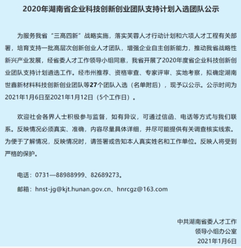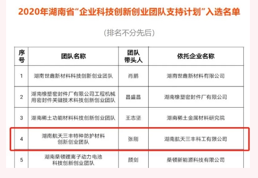 近日,湖南航天三丰科工有限公司特种防护材料创新创业团队成功获批“湖南省企业科技创新创业团队”。