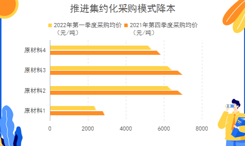 湖南磁电持续推进集约化采购模式,积极主动开展谈判,以掌握的最新市场动态为引,不断压降采购价格,2022年一季度较2021年四季度原材料实现采购降幅约8%,降本约400万元。