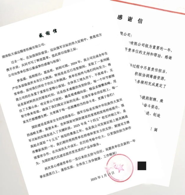 2025年农历年到来之际,诚远公司陆续收到客户单位发来的感谢信。