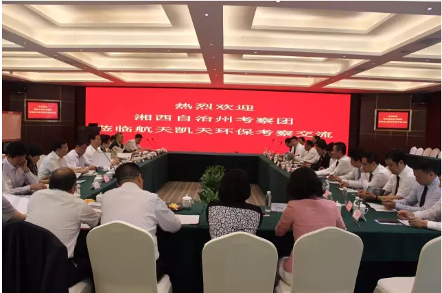 5月16日上午,中共第十八届中央候补委员、湖南湘西自治州委书记叶红专同志带队,州委副书记、州长龙晓华和州委副书记曹普华等同志参加,组织统战部、宣传部、政协等部门负责人及下属各县委书记来航天凯天环保科技股份有限公司考察调研对接具体环保项目。湖南航天党委书记唐应伟、副总经理宋卫武与航天凯天环保总裁叶明强、常务副总裁周波平等同志共同参加接待和洽谈,共商全面推进湘西州绿色、生态、环保、智慧城市建设合作事宜。唐应伟在会上表达了与湘西州在经济社会发展中的合作意愿,并提出以湖南航天在湘西保靖通坝村的扶贫点为媒介和平台,在环保产业诸多方面进行合作,促进湘西经济社会发展。 会议成功举行,双方就合作事宜达成共识。