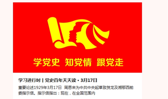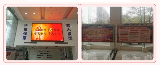 湖南航天全级次围绕党史学习教育动员部署会精神开展各项主题活动,并制作宣传标语及时在大屏幕、展板等宣传阵地进行布置,确保宣传内容第一时间进车间、进班组。湖南航天云信公众号开设“党史百年天天读”专栏,每日发布党史学习内容;引导党员全面系统学党史,以供全体员工学习,激发员工学习兴趣,从党的奋斗历史中汲取前行的智慧和力量,以史明今。