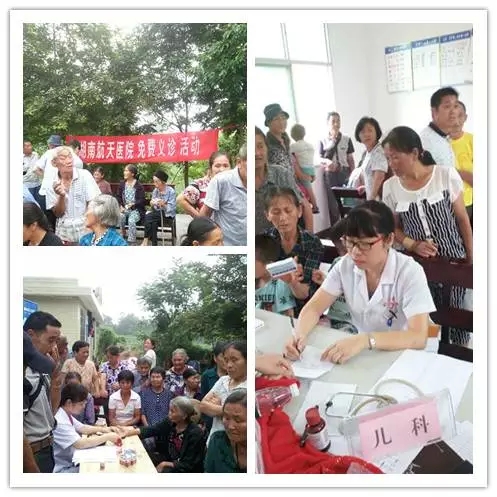 湖南航天医院党委书记黄婵娟亲自带队,组织外科、内科、妇产科和儿科等科室教授来到通坝村义诊。免费为父老乡亲送去口服及外用药品48种,为他们做了血糖、血压、体温检测、妇科儿科普查、内科外科检查等,并在现场进行急救培训和演练。村民们排好队积极配合,专家团队为到达现场的300多人进行检查和咨询,发放宣传资料500余份,共检查出高血压12人、高血糖16人、妇科炎症19人、部分儿童存在营养不良、贫血、缺钙等喂养方面的问题和缺陷儿童照看不周的问题,均已给予药物治疗及健康宣教、指导。