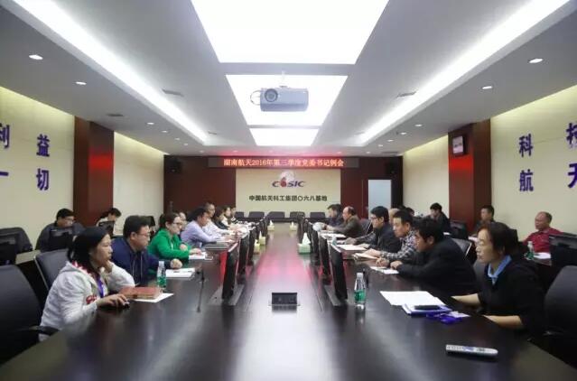 10月12日下午,湖南航天有限责任公司召开2016年第三季度党委书记例会暨党委书记、党支部书记论坛。湖南航天党委书记唐应伟、纪委书记韩海彬,湖南航天人力资源部、纪检监察审计部、党群工作部部长、副部长,所属各单位党委书记、副书记、纪委书记、工会主席,湖南航天督导组组长、副组长共20余人参加了会议。
