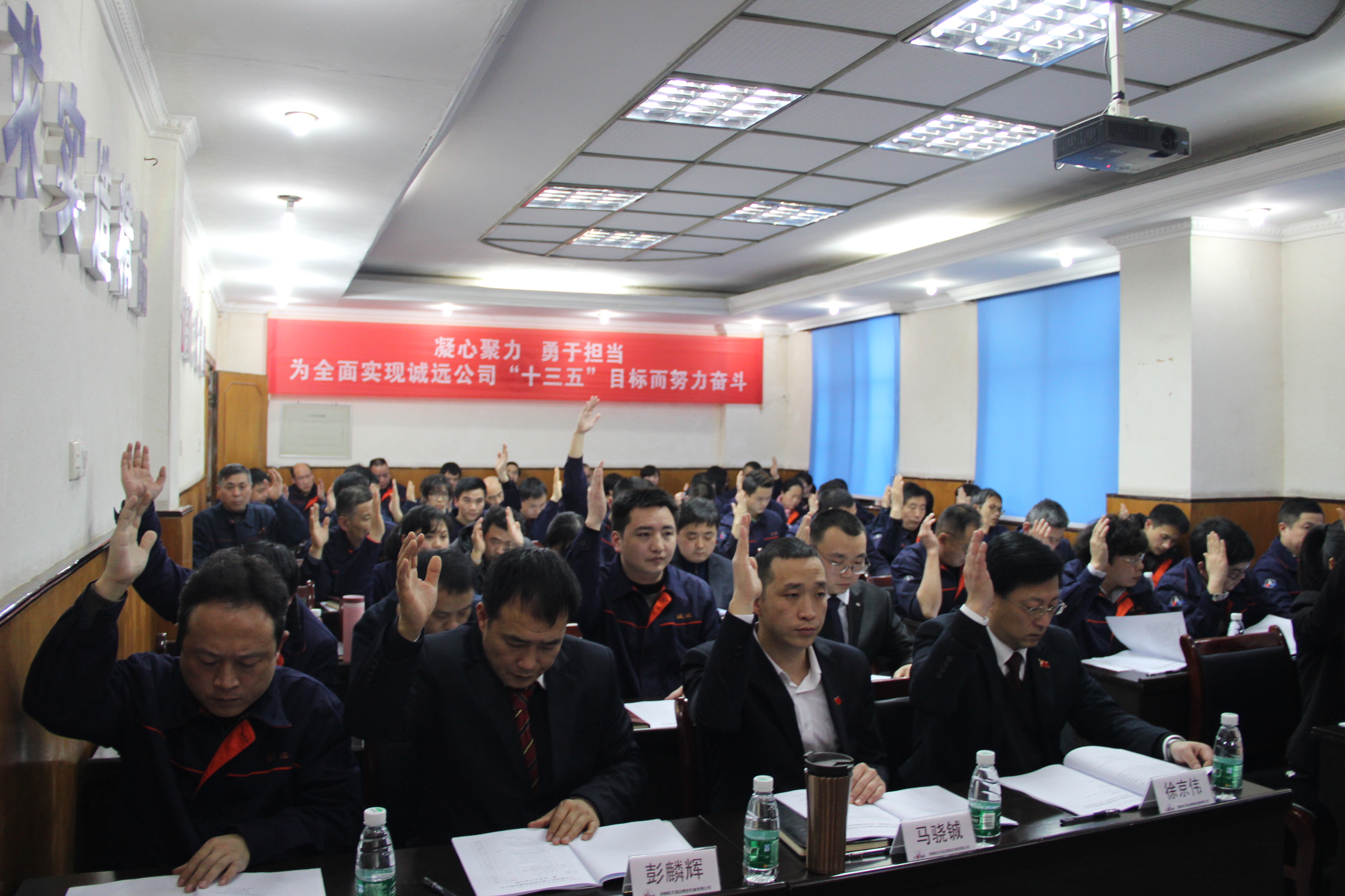 会上,丁楚平代表临时党委作了题为《凝心聚力、勇于担当 为实现诚远公司“十三五”目标努力奋斗》的临时党委工作报告;罗俊同志代表临时纪委作了题为《践行“四种形态”,强化监督执纪问责,为公司跨越发展提供有力保障》的临时纪委工作报告。报告对诚远公司“两委”工作进行了深入客观的总结,并对新一届党委和纪委工作提出了要求和建议。全体党员一致同意“两委”工作报告,所形成的决议一致表决通过。 大会选举产生了诚远公司第一届党委委员和纪委委员。丁楚平、罗俊、徐京伟、康东晖四位同志高票当选诚远公司第一届党委委员;肖敏、陈礼、罗俊三位同志高票当选第一届纪委委员。