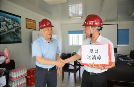 为了确保麓谷项目早日完工,项目办的同事组织施工单位坚守一线施工,加班加点,赶超序时。杨运斌鼓励大家,一方面要克服高温困难,高质量完成建设,确保麓谷项目人员安全和施工进度;另一方面也要注意防暑降温,科学合理安排作息时间,保证身体健康。