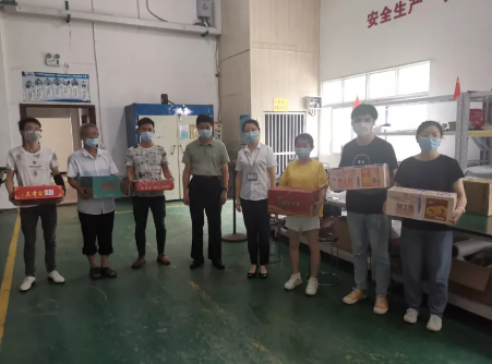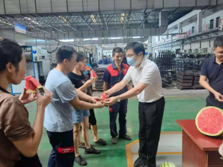 烈日炎炎,骄阳似火。为表达对一线员工的关爱之情,湖南航天总会计师严波代表湖南航天党委、工会,来到湖南磁电瓦磁生产线,对高温酷暑下仍奋战在一线的广大职工进行了亲切慰问和交谈,并为在场员工送上清凉茶、西瓜和防暑降温物资。湖南磁电党委书记、董事长郑自儒陪同。