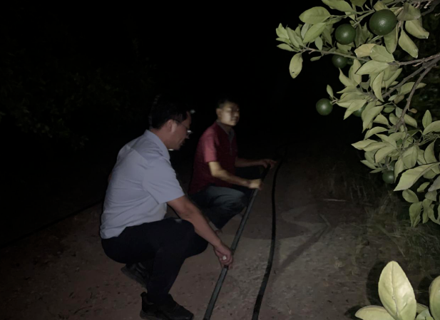 挂断电话,工作队立马与农技人员取得联系,深夜开车协调周转,把农技人员请到现场,同时辅助技术人员维修,经过2个小时连夜奋战,终于在凌晨5点把设备修好了。这时大家才深深松了一口气。“真是太感谢你们了,现在出水了……”不远处听到了小河口片区老张激动地说。