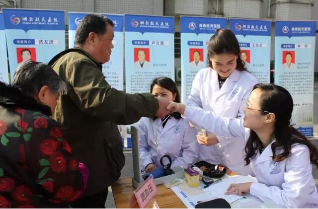 随后,湖南航天医院医生与专家队伍,联合麓谷街道社区服务中心的医护人员,为患者进行健康咨询、免费体检、疑难疾病会诊等大型义诊活动。
