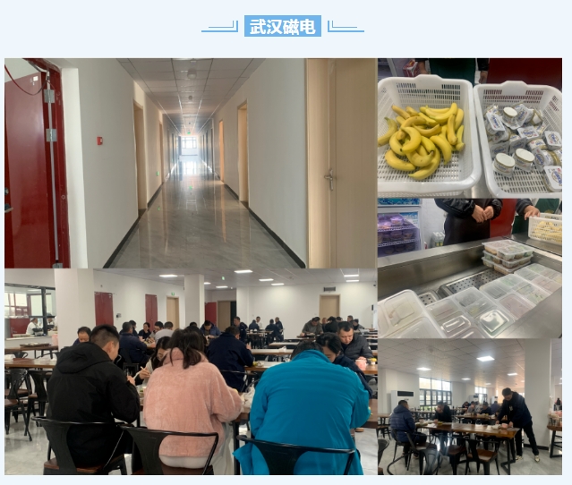 武汉磁电着力解决职工群众的操心事、烦心事、揪心事,把实事办到群众心坎里去。目前,武汉磁电新厂区宿舍已建设完工并投入使用。同时,武汉磁电不断加强新厂区食堂餐饮质量,定期更换菜单,增加餐食的选择性,为新厂区职工提供良好的工作和生活条件。