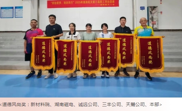 当天下午,经过激烈角逐,比赛落下帷幕,航发公司、中山新高、7801研究所分获冠、亚、季军。武汉磁电、航天凯天获最佳组织奖。新材料院、湖南磁电、诚远公司、三丰公司、天麓公司、本部获道德风尚奖。
