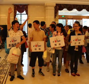 比赛开始前,泳池畔便一片欢乐沸腾的景象。只见选手们个个摩拳擦掌,舒展筋骨,做足赛前热身运动,欲一展水上矫健身手。而来自各部门的啦啦队也在一旁为选手们打气助威。