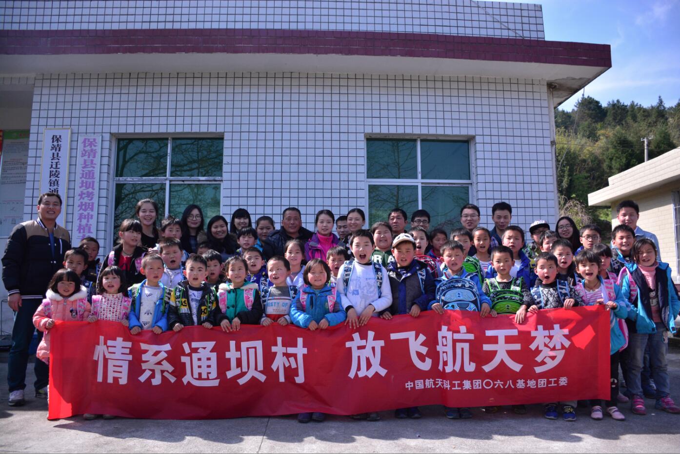 本次爱心助学志愿活动主题为“情系通坝村、放飞航天梦”,志愿活动由基地团工委组织,7801研究所团委承办,来自7801所、远望、磁电、诚远、航发、物业的16名志愿者加入其中。志愿者为通坝村的贫困小学生们送来了学习用品,以及各类课外书籍、练习册600余本,并向通坝村村委会捐赠了创建多媒体会议室急需的办公设备。在捐赠仪式上,青年志愿者为孩子们准备了一场生动且富有趣味性的科技小讲堂,给孩子们普及航天知识、传播航天文化。参与活动的贫困学生十分珍惜这一难得机会,课堂上个个全神贯注,眼睛里充满了求知的渴望,大家开心得簇拥在一起与志愿者们拼接航天模型,并从志愿者手中接过崭新的学习用品,教室外被前来陪同的村民围得水泄不通,家长们挤在窗外伸着脑袋高兴地望着孩子们,场面十分温馨和感人。随后,志愿者深入基地派驻的两位扶贫工作人员的住所进行探望,并为他们送去了水果和食品。在他们的陪同下,参观了由扶贫工作队牵线搭桥引进的绿色蔬菜产业基地和生态旅游施工现场,实地深入了解了通坝村的未来远景规划和发展目标。